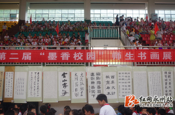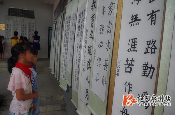 近日,江永一小举行第二届“墨香校园”师生书画展,共收集师生作品约700幅,从侧面展示了该校“墨香校园”的成果,进一步丰富了师生的校园文化生活,给校园增添了一道靓丽的风景。