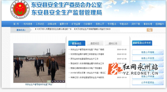 红网永州站3月30日讯(通讯员 陈天德 龚茶玲)在东安县委、县政府及有关部门的关心支持下,东安县安监局门户网站于2016年1月建成,目前已试运行3个月,成为永州市首家县级安监门户网站。