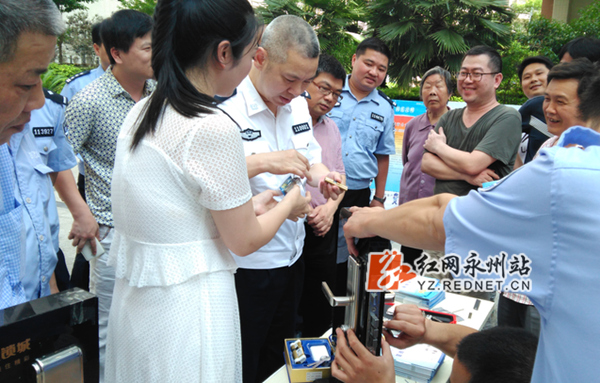 永州市副市长、市公安局局长刘新良在现场向小区居民讲解防盗知识