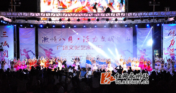 红网永州站8月19日讯(通讯员 杨雄春 黄智征 骆彪)8月18日晚7点30分,伴随着热情的舞姿和奔放的旋律,蓝山县“激情八月·活力文明蓝山”广场文化艺术周在三蓝广场正式启幕。300多名文化艺术爱好者参加开幕式表演,吸引了3000多名群众到现场观看,再次唱响“欢乐潇湘”。