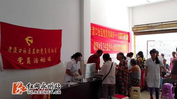 红网时刻9月11日讯(通讯员 陈雄德 陈传柏 秦俐君 秦杨柳)为进一步落实国家基本公共卫生服务项目, 充分体现政府对群众的关心和关怀,提高辖区居民的健康水平,9月10日,零陵区朝阳街道办事处老渡口社区,邀请朝阳卫生服务中心医务人员到该社区开展居民免费体检义诊活动,对该辖区居民进行身体健康检查。
