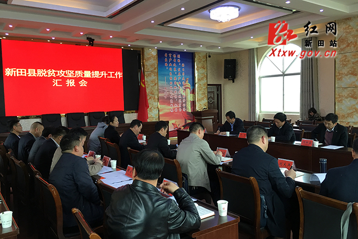 汇报会上,贺辉听取了新田县脱贫攻坚质量提升工作情况汇报,深入细致的了解近段时间来新田的脱贫攻坚工作进展情况和问题查摆解决情况。