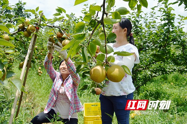 红网时刻永州6月25日讯(通讯员 黎实 黄志东)6月25日,江华瑶族自治县大路铺镇兰下村生态有机“瑶山雪梨”基地内,村民们正在采摘生态有机“瑶山雪梨”。这些优质“瑶山雪梨”在两天内就会售卖到广州、长沙等城市,为瑶胞们带来可观的收入。