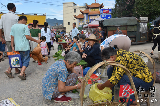 红网时刻8月5日讯(蓝山站记者 李忠仁)8月4日,正逢蓝山县竹市镇赶圩的大好日子,镇下各个村的,甚至附近几个镇上的人把自家养肥的家禽、成熟的蔬菜等其他生活用品拿到赶圩的集市上售卖,人群延长有1里多长。