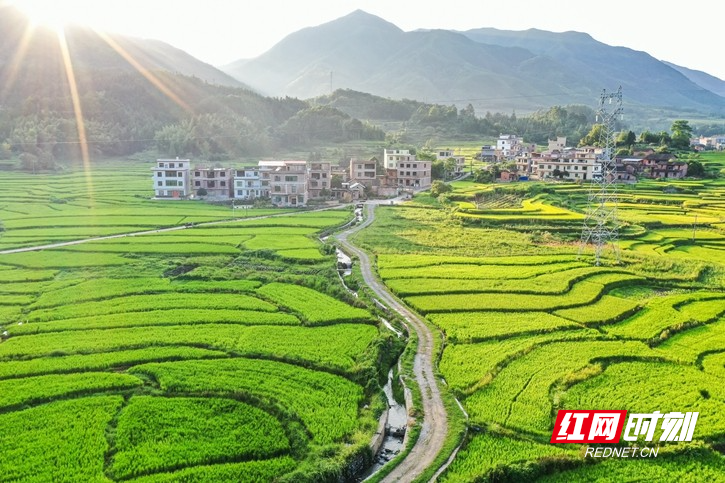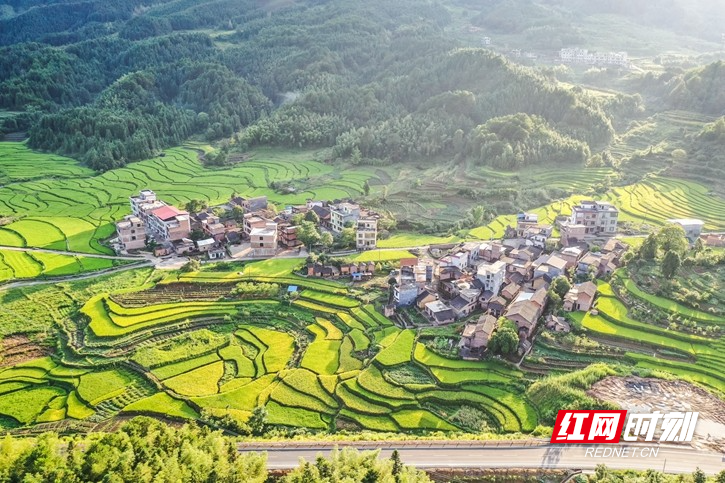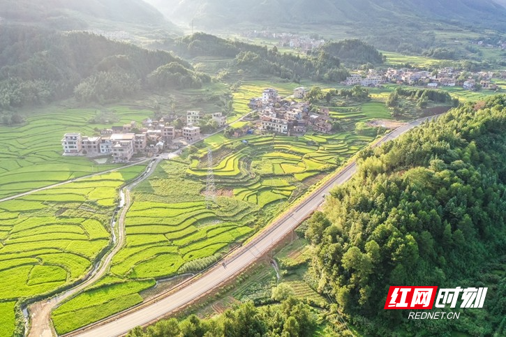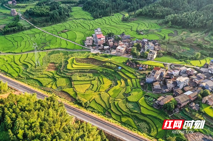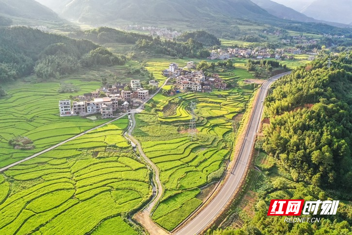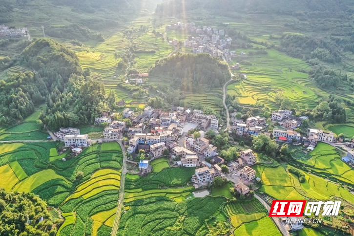 红网时刻新闻8月18日讯(通讯员 彭华)8月15日,湖南省永州市蓝山县所城镇新山田村,层叠的稻田渐次泛黄,把村庄点缀得美丽如画,呈现出一派欣欣向荣的乡村田园景象。