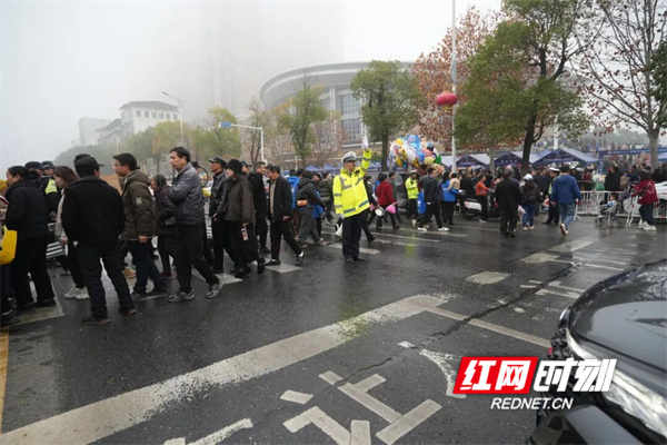 面对赛场及周边交通压力,公安交管部门精准实施临时交通管制,交警有序指挥车辆,确保公交与特种车辆优先通行,指引摩电有序停放,耐心劝导群众错峰绕行,以温馨提醒、主动帮扶传递温度,让安保既有力度更有暖意。