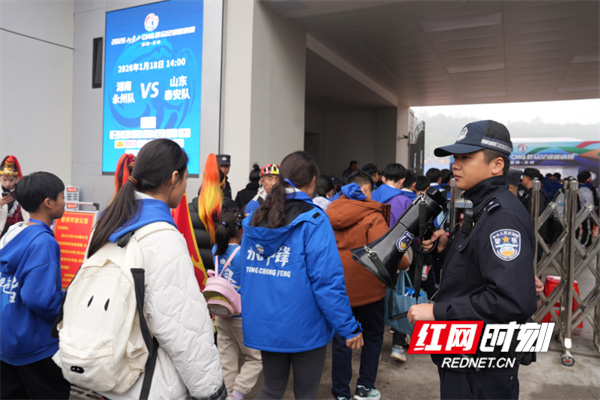 1月18日,由中央广播电视总台主办的2026CMG群众足球邀请赛在永州市体育场激情开赛。湖南永州队与山东泰安队为全国观众奉献了首场精彩对决,标志着这场为期7天、汇聚六省冠军的足球盛会正式启幕。球场内,球员拼抢、球迷呐喊,热情如火;球场外,永州公安的藏蓝身影全程守护、默默奉献,以最高标准、最实举措,确保了赛事安全、畅通、有序,让这场全国性的体育盛宴在冬日暖阳下平安绽放。