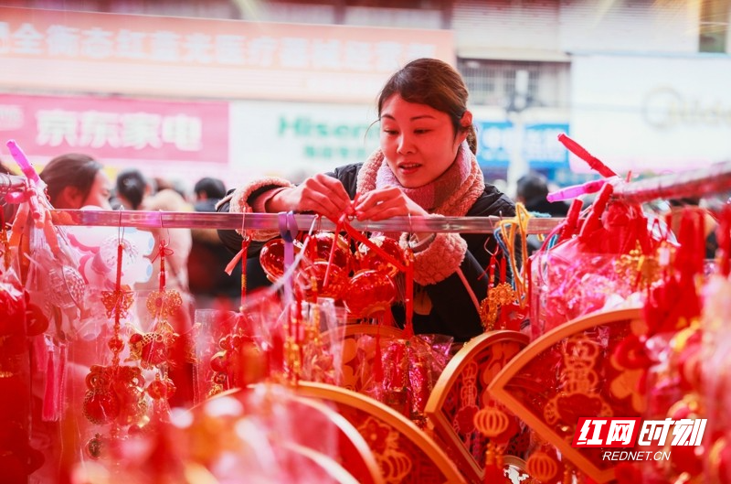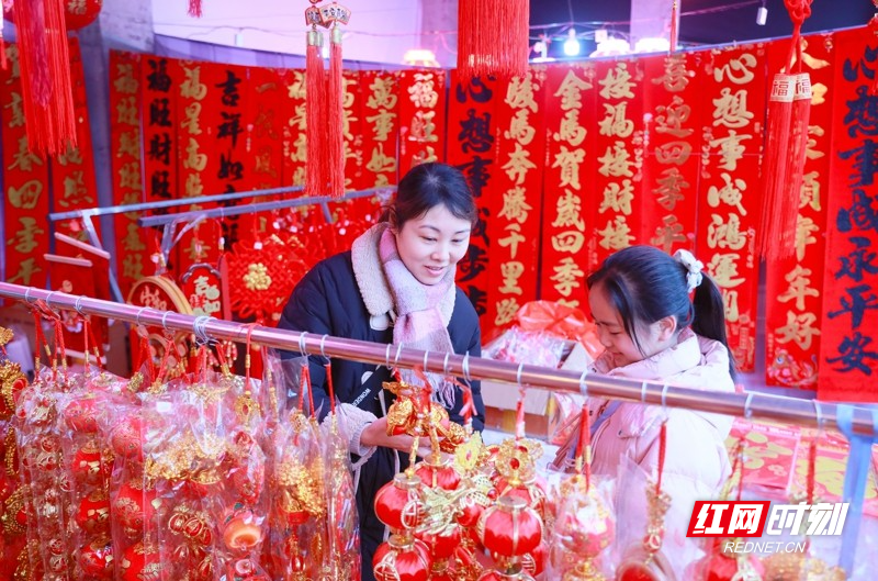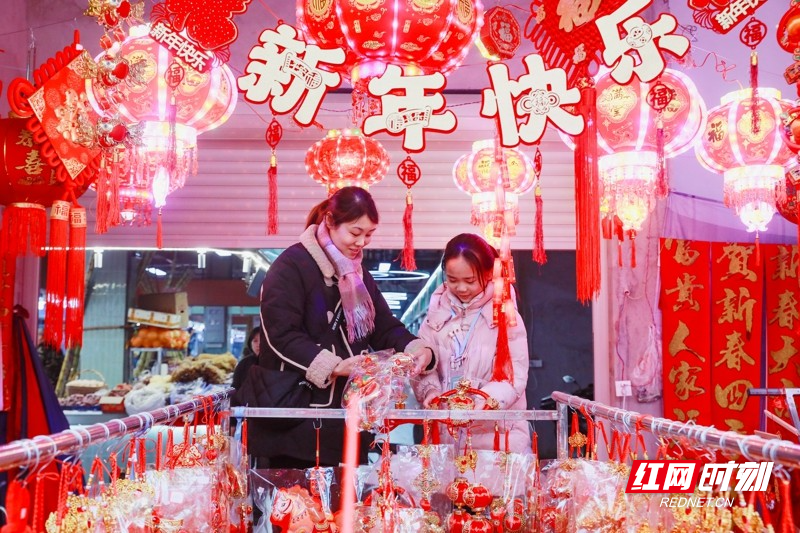 红网时刻新闻1月26日讯(通讯员 刘贵雄 陈祉凝)1月26日,人们在湖南省永州市新田县中山农贸大市场选购春节年货。当天是腊八节,我国民间素有“过了腊八就是年”的说法,湖南省新田县年货市场新春饰品、糖果、蔬菜、肉品、水产等各类商品琳琅满目,人们忙着选购各类年货,浓浓年味扑面而来。