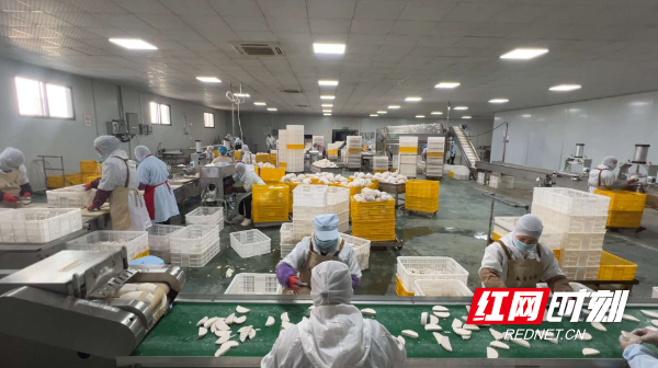 红网时刻新闻1月26日讯(通讯员 谢文彬)年关将至,湘苏两地情谊持续升温。江永县五香食品有限公司的生产车间内机器轰鸣作响,工人们铆足干劲赶制芋泥、芋圆等香芋制品,抢抓跨省互动热潮机遇,全力冲刺年货市场,让江永特色美味香飘大江南北。