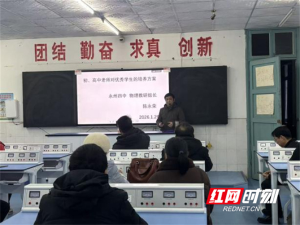 红网时刻新闻1月29日讯(通讯员 张明明 卢爱玲)为深入贯彻落实小初高贯通式培养教育理念,充分发挥永州四中优质教育资源的示范引领作用,推动区域基础教育质量整体提升,1月29日上午,永州四中在李达中学正式启动“2026年小初高贯通培养名师指导活动”。李达中学、德雅学校、市十二中、京剑学校等多所初中学校教师代表积极参与活动,共同探讨学段衔接与能力贯通培养路径。