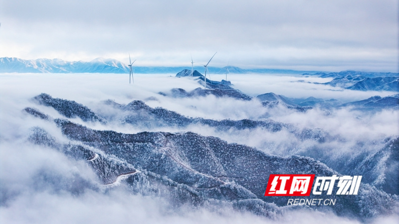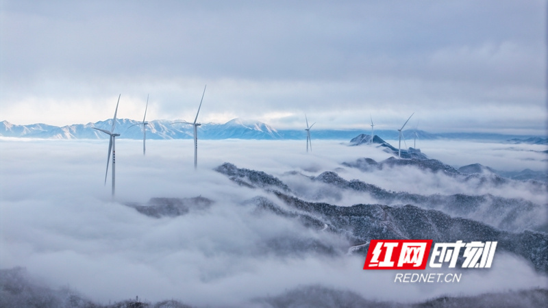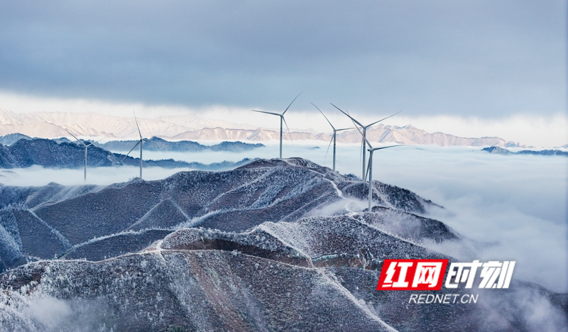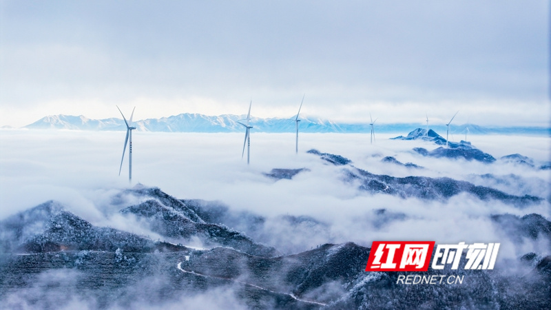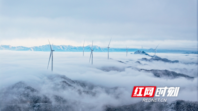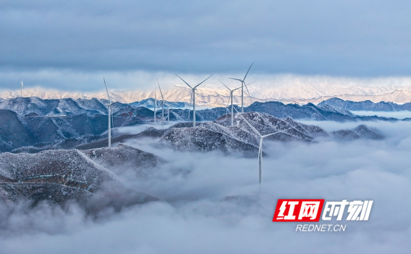 红网时刻新闻1月23日讯(通讯员 刘贵雄 陈祉凝)1月23日,湖南省永州市新田县门楼下瑶族乡九峰山银装素裹,云海涌动,一台台风电机组矗立在山巅,风景如画。近年来,湖南省新田县坚持生态优先、绿色发展理念,充分利用风能资源丰富的优势,大力发展风力发电等清洁能源,实现资源的有效综合利用,有效促进节能减排,助力绿色低碳发展。