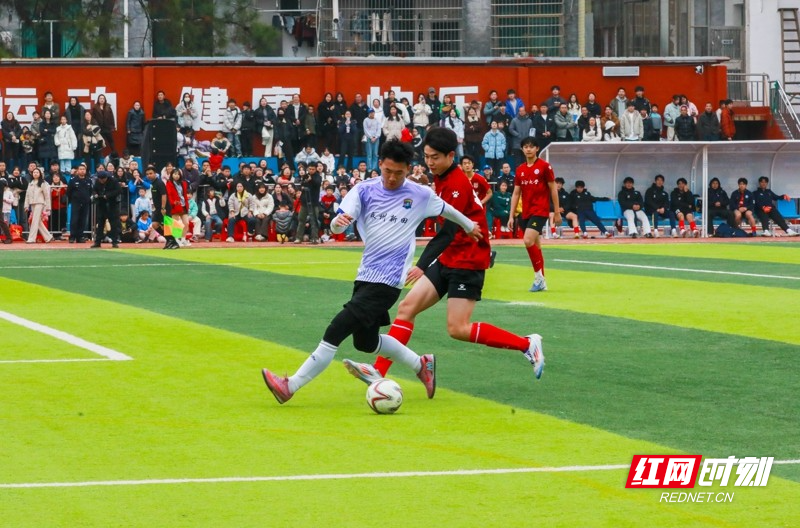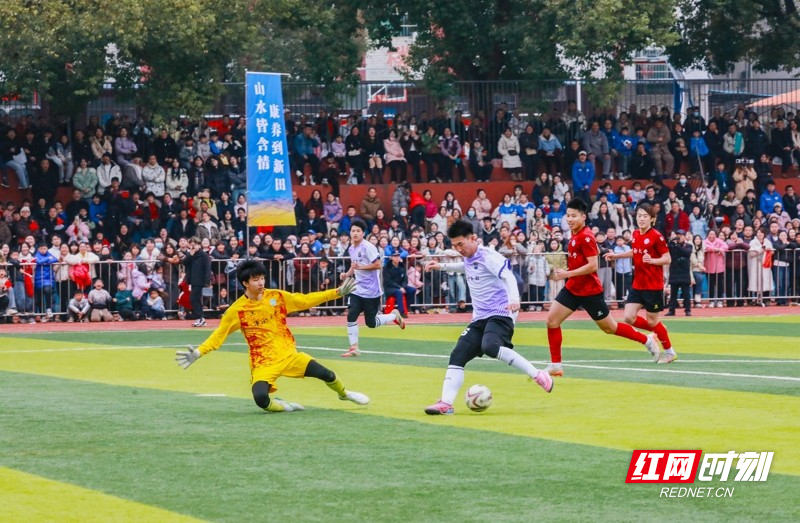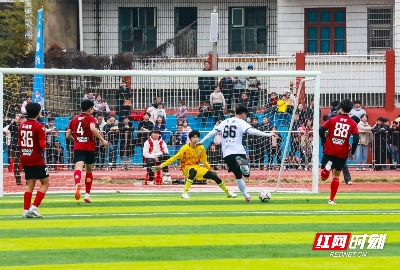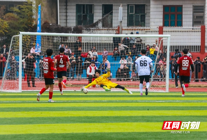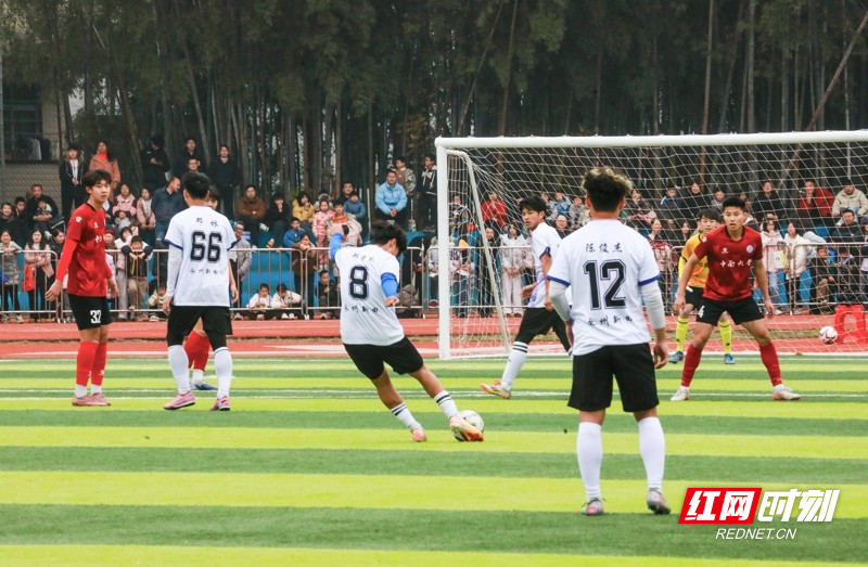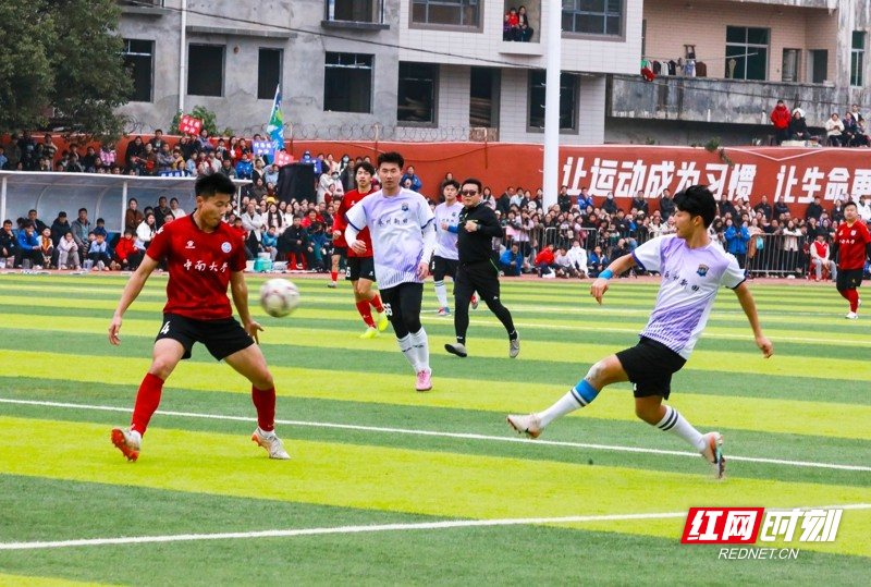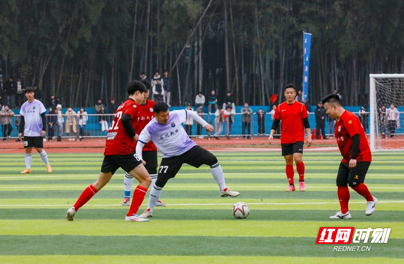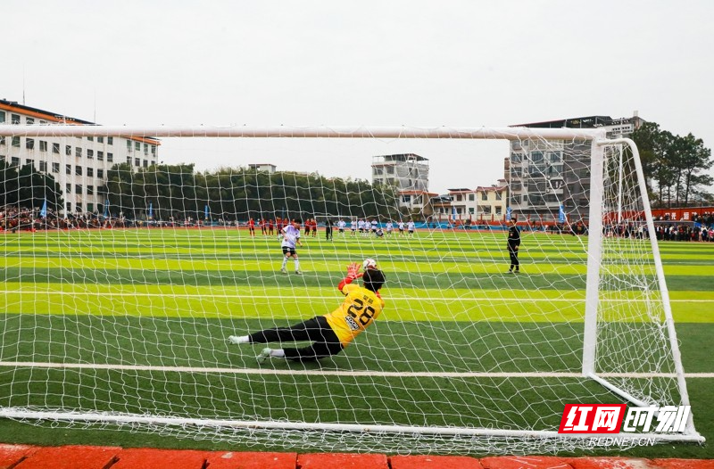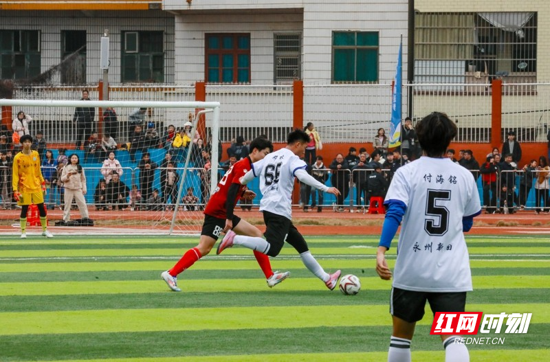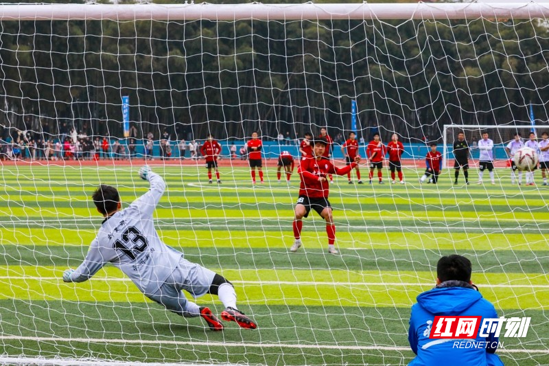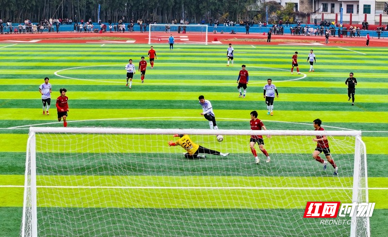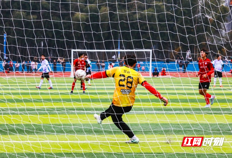 红网时刻新闻1月30日讯(通讯员 刘贵雄)1月29日,湖南省永州市新田县第二中学足球场,双方球员在激烈比拼。当天,中南大学队与永州新田队足球友谊赛在该校举行,双方通过激烈角逐常规时间9:9战平,最终,通过点球大战,中南大学队以13比11的总比分战胜永州新田队。
