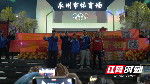 红网时刻新闻1月8日讯(通讯员 毛文涛)湘超联赛永州队夺冠后,江苏网友捐赠的“这里是永州,我们是冠军”广告牌掀起全网第二波热度,更点燃了全国网友尤其是江苏网友赴永热潮。1月7日晚,江永县文旅团队携特色好物,在永州市体育场与千里奔赴的江苏球迷、网友上演暖心双向奔赴。