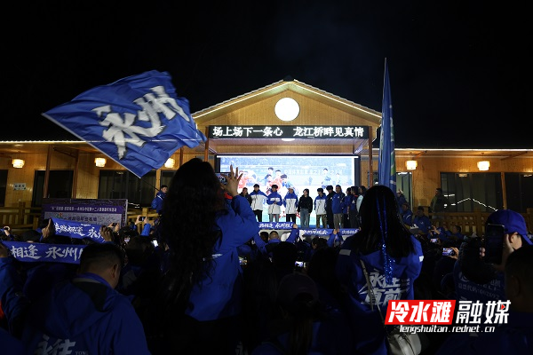 红网时刻新闻1月5日讯(通讯员 李秋燕)1月3日,湘超永州队队员邓泽林、张家豪、赵奥鑫和高响走进冷水滩区仁湾街道龙江桥村,与500余名球迷现场“奔现”互动。没有专业的塑胶草坪和明亮射灯,取而代之的是脚下略显坑洼的泥土地和远处连绵的田野,每一位身着永州蓝的球迷都是足球运动员,现场加油声、欢笑声此起彼伏,龙江桥村“野生足球场”成为球迷们的“新主场”。