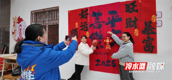 活动现场,书法爱好者挥毫泼墨,一副副吉祥春联、一个个遒劲福字跃然纸上,将马年寓意融入笔墨,传递新春祝福。冷水滩区摄影协会摄影师化身“记录者”,用镜头定格温馨瞬间,免费为大家拍照留念,留存团圆温情。