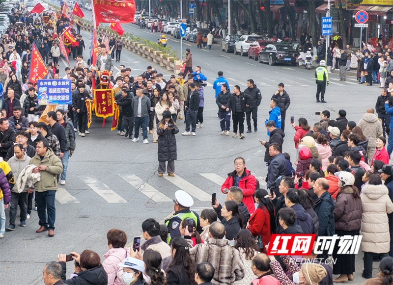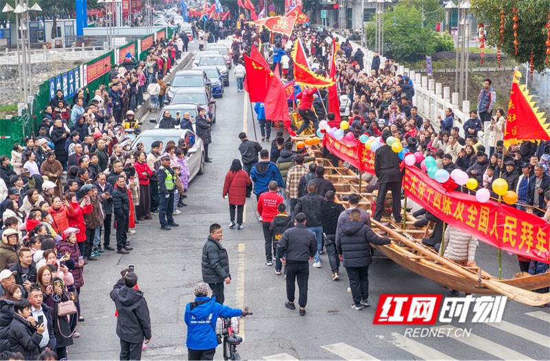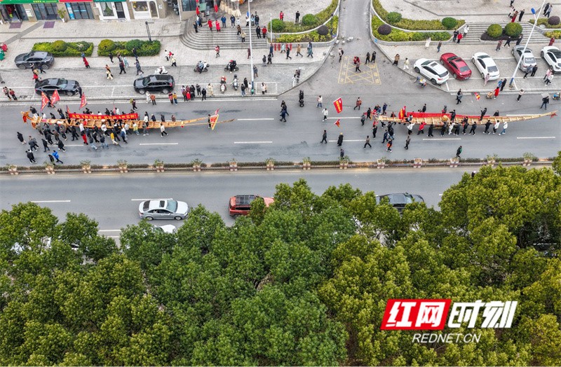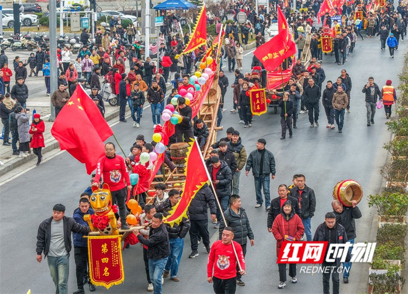 2月17日,农历正月初一,湖南省永州市道县城区潇水路上锣鼓喧天、人声鼎沸。当地群众热情高涨,齐心协力推着装饰一新的道州龙船走上街头,浩浩荡荡展开巡游。正值新春佳节,道县精心策划推出“龙船闹春 福满古城”的道州龙船巡游活动,将浓浓年味与非遗深度融合,让市民与游客在参与巡游、观赏民俗的同时,近距离感受非遗魅力,欢欢喜喜共度传统中国年。值得一提的是,2021年,端午节(道州龙船习俗)列入第五批国家级非物质文化遗产代表性项目名录。
