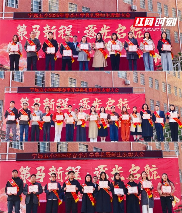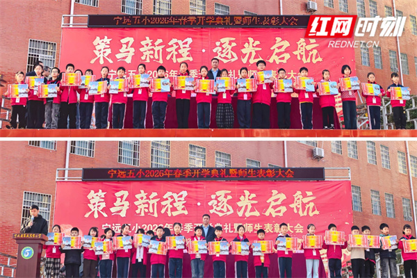 红网时刻新闻3月19日讯(通讯员 廖铖彦)日前,宁远县第五完全小学举行2026年春季开学典礼暨表彰大会,全体师生齐聚校园操场,以饱满的精神状态迎接新学期、开启新征程。