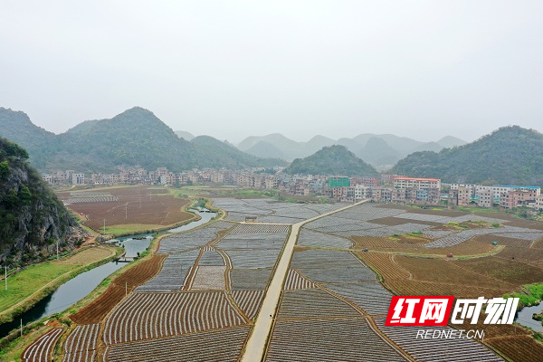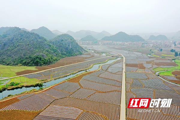 红网时刻新闻3月27日讯(通讯员 蒋军君 李样军)万象“耕”新正当时,烤烟田畴绘“丰”景。当前正值烤烟生产关键期,在湖南省新田县石羊镇宋家村、放乐洞村一带,成片烟田蜿蜒铺展,一垄垄烟垄整齐划一,崭新的银灰地膜铺满田野,宛若为土地披上“盛装”,从高处俯瞰,恰似大地留下的“指纹”。