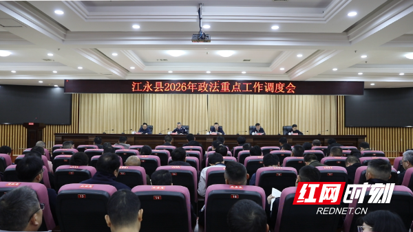 红网时刻新闻3月20日讯(通讯员 廖光瑜 周琳琪)3月18日,江永县2026年政法重点工作调度会召开。会议全面贯彻落实党中央、省委、市委政法工作会议精神,安排部署今年全县政法重点工作,县委书记李群辉出席会议并讲话,县委常委、县委政法委书记文斌通报有关情况并安排相关工作,县领导周仁文、魏东平、夏宁春出席会议。
