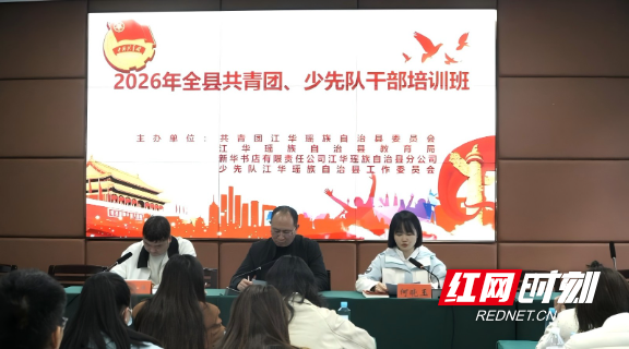 红网时刻新闻3月31日讯(通讯员 兰晓侠 周羽轩)为进一步提升江华瑶族自治县中小学德育工作水平,加强团队干部队伍建设,2026年3月25日至27日,由共青团江华瑶族自治县委、县教育局、县少工委及湖南省新华书店有限责任公司江华瑶族自治县分公司联合主办的2026年全县中小学德育工作、团、队干部业务培训在县教育局大会议室顺利举行。来自全县各中小学的110名少先队大队辅导员、中学团委书记参加了本次培训。