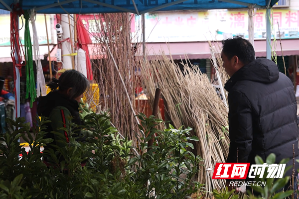 在县城大市场、明珠新村后门的苗木销售区,摊位整齐排列,杉木、柑橘、杨梅、油茶、桃子、李子等经济林苗木与绿化苗木品种齐全、长势良好。苗农们忙着修剪、捆扎、推介苗木,市民逐摊挑选、仔细甄别品相、咨询栽种技巧,选购、搬运、装车的人群往来不息,勾勒出一幅热闹的春日备耕图景。