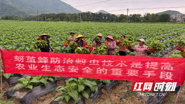 与此同时,绿色生物防控同步落地见效。技术人员按照统一部署,在烟田精准释放蚜茧蜂——这种专门寄生烟蚜的寄生蜂,是烟蚜的天然天敌,通过“以虫治虫”的生态方式,可从源头遏制烟蚜滋生。搭配物理诱杀、统防统治等综合措施,全县烟田实现全程绿色防控,既守护生态环境,又保障烟叶品质安全。