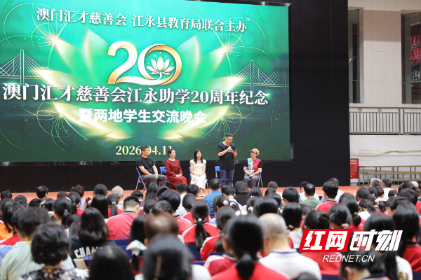 红网时刻新闻4月13日讯(通讯员 廖光瑜 朱俊 万中)4月11日晚,澳门汇才慈善会助学20周年纪念暨两地学生交流会在江永一中体育馆举行。江永县委副书记、县长于思洋,副县长蒋剑平出席活动,与澳门爱心人士、志愿者及江永受助学生共同见证这一温情时刻。