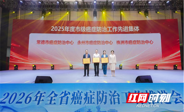 红网时刻新闻4月14日讯(通讯员 何素珍)近日,全省癌症防治工作推进会、肿瘤防治宣传周启动会及科普大赛等系列活动在长沙举行。永州市在此次活动中斩获多项荣誉,并在全省癌症防治工作会上就“永州经验模式”作典型交流发言。其中,永州市癌症防治中心(永州市中心医院)荣获全省“2025年度市级癌症防治工作先进集体”“2025年度癌症早诊早治工作先进单位”两项称号。宁远县癌症防治中心(宁远县人民医院)荣获全省“2025年度县级癌症防治工作先进集体”。永州市癌症防治中心选送的科普作品分别获得湖南省第三届肿瘤防治科普大赛视频类一等奖、演讲类三等奖、表演类三等奖。