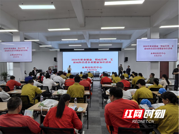 红网时刻新闻4月27日讯(通讯员 杨海霞 潘纯)4月25日至5月1日是第24个全国《职业病防治法》宣传周,为深入贯彻“守护职业健康 共建健康中国”的活动主题,切实强化企业职业病防治主体责任,提升企业员工健康素养,4月27日,永州市疾病预防控制中心组织专业技术团队,走进国家能源集团永州发电有限公司,开展职业卫生、慢性病与艾滋病防控知识专题宣传讲座活动,以精准科普服务为企业员工撑起健康“保护伞”。