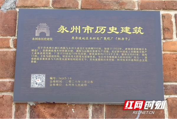红网时刻新闻4月28日讯(通讯员 王荣彬)近日,永州市人民政府正式公布“永州市第五批历史建筑名单”,原零陵地区木材总厂篾缆厂(红房子)凭借厚重的工业历史价值、独特的建筑风貌与成功的活化利用实践,成功入选市级历史建筑名录,为永州工业遗产保护与城市文脉传承再添重要一笔!