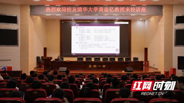 红网时刻新闻4月28日讯(通讯员 伍慧 唐凯)4月24日,永州一中优秀校友、清华大学数学科学系长聘教授黄忠亿博士重返母校。在校长龙路云与原党委委员蒋授荣的全程陪同下,黄忠亿教授漫步校园,抚今追昔,感慨万千。当晚,蘋洲会堂座无虚席,气氛热烈。作为从永州一中走出的顶尖学者,黄忠亿教授应邀为全校师生带来了一场精彩分享——既有学术的高度,又有人生的厚度,更有故土的温度。