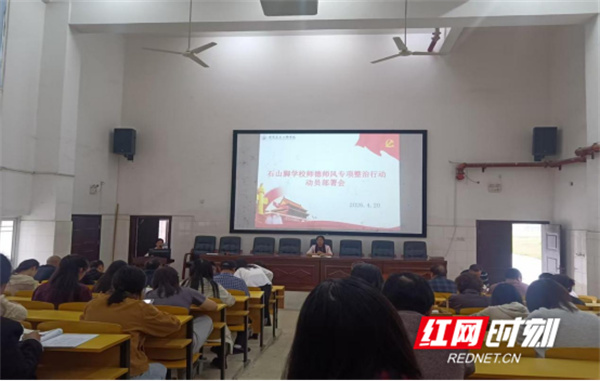 红网时刻新闻4月29日讯(通讯员 唐飞舟 彭定容)为深入贯彻落实上级教育主管部门关于师德师风建设的工作部署,全面加强教师队伍思想政治建设与职业道德修养,坚决整治师德师风突出问题,营造风清气正的育人环境,4月27日,零陵区石山脚学校召开2026年上期师德师风专项整治动员部署会。学校领导班子及全体教职工参加会议。