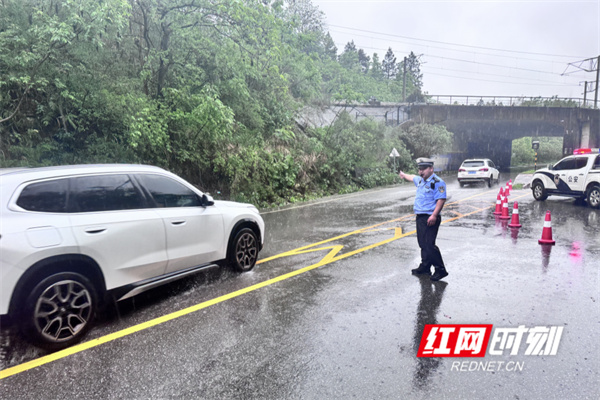 红网时刻新闻4月22日讯 受强降雨天气影响,永州多地出现降雨积水、道路湿滑等情况。面对恶劣天气,永州公安闻令而动、向险而行,各县市区公安民辅警坚守一线、履职尽责,全力开展交通疏导、防汛排查、应急救助、护学安保等工作,以藏蓝担当筑牢汛期安全屏障,守护群众出行平安。