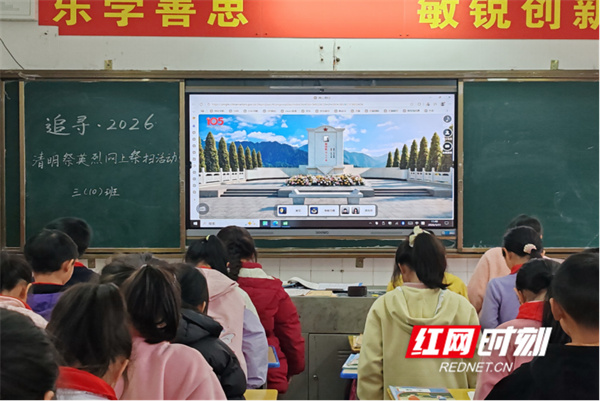 红网时刻新闻4月1日讯(通讯员 何秋红)清明将至,新田县双碧学校以“缅怀先烈,感恩前行”为主题,同步开展主题班会与“追寻·2026·清明祭英烈”网上祭扫活动,引导少先队员铭记英烈事迹、厚植家国情怀。
