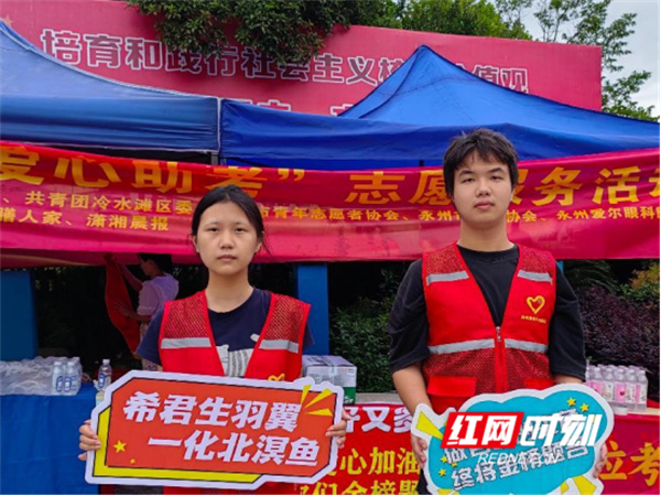 红网时刻新闻6月9日讯(通讯员 唐新宇 刘应希)2025年6月7日至8日,高考期间,在共青团永州市委、永州市青年志愿者协会指导下,永州职业技术学院“周末公益”志愿服务队40余名志愿者,身着鲜艳的“志愿红”马甲,分赴永州二中、永州八中及永州四中(南门、北门)四个高考志愿服务点,开展“爱心助考”志愿服务活动,为紧张的高考日注入汩汩暖流。