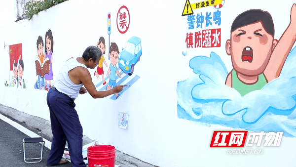 墙绘内容丰富且主题鲜明,既有“珍爱生命,拒绝毒品”的醒目警示,也有“预防溺水”“文明出行、交通安全”的温情提醒,同时,描绘邻里和谐的“和美社区”场景也生动鲜活,为社区注入了浓郁的文化气息,吸引不少路过居民驻足观看。