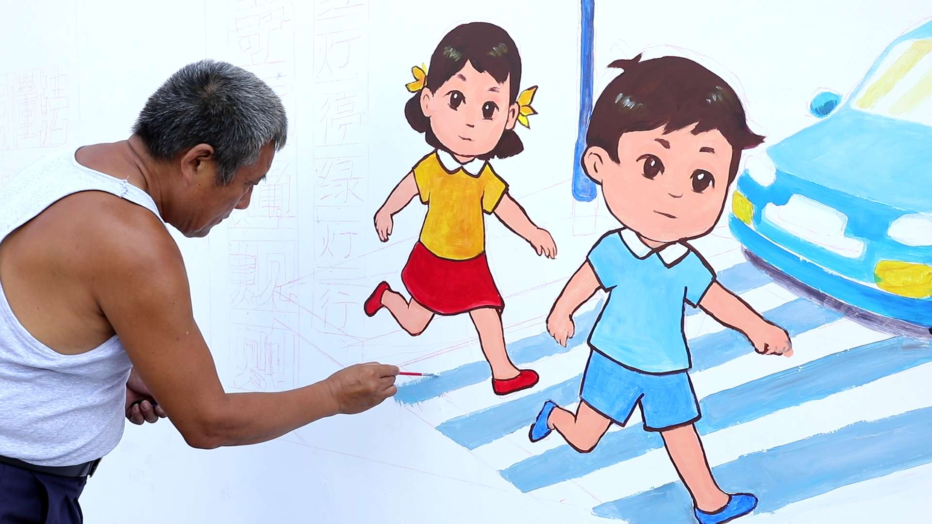 居民杨丽兰称赞道:“这幅画真不错,教孩子过马路时遵守交通规则,很有教育意义。”
