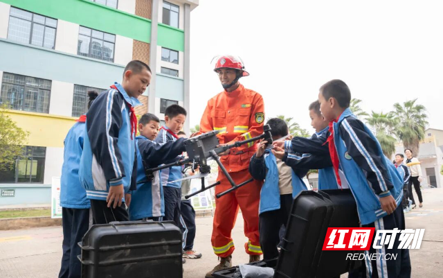 活动设置了森林防火扑火设备实战展示环节,零陵区森林消防员模拟火情,动态演示了无人机、机器狗等先进科技灭火装备,吸引了师生广泛关注。现场还静态展示了消防水车、山地摩托车、油锯等多种扑火器材,让学生们近距离了解森林防火灭火设备与流程。此外,学校同步组织了森林防火专题班会课和知识抢答活动,通过差异化、趣味性的教学方式,有效提升了学生们的防火安全意识和自救互救能力。