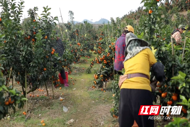 不一会儿,金灿灿的果实便堆满了箩筐。果园里,大家分工有序,有的剪果,有的装桶,有的搬运、筛果、过秤、装车……现场洋溢着忙碌而喜悦的丰收氛围。务工人员唐先生表示:“我在这里工做了两年,中午还包一顿饭,一天100块钱,挺满意的。”