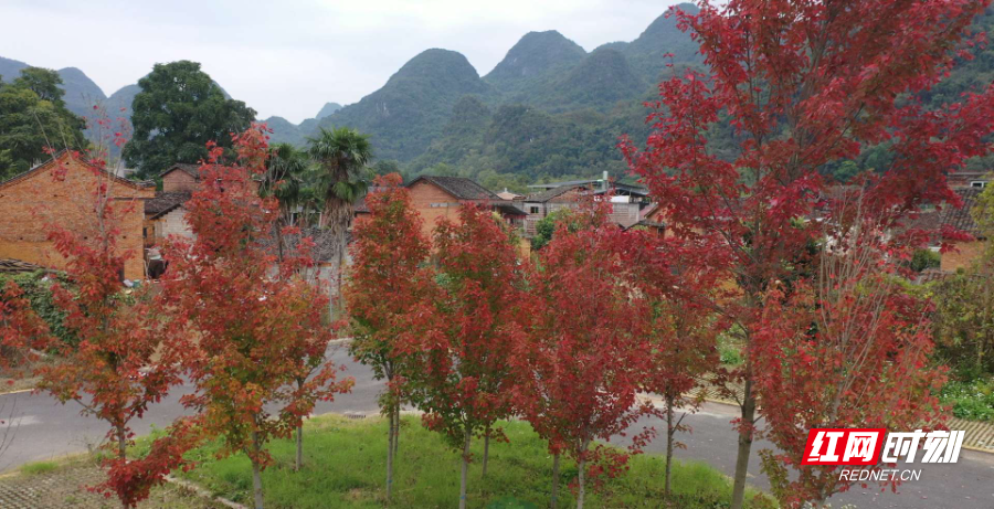 红网时刻新闻11月18日讯(通讯员 谢文彬 陈平成)初冬时节,江永县兰溪瑶族乡勾蓝瑶寨,青山巍峨,红叶烂漫,古朴的民居与绚丽的自然风光交相辉映,构成了一幅诗意盎然的生态画卷。