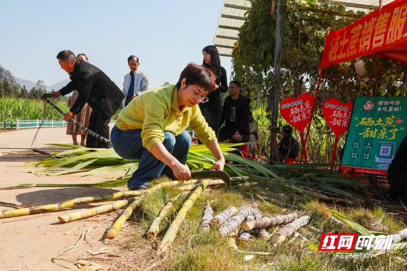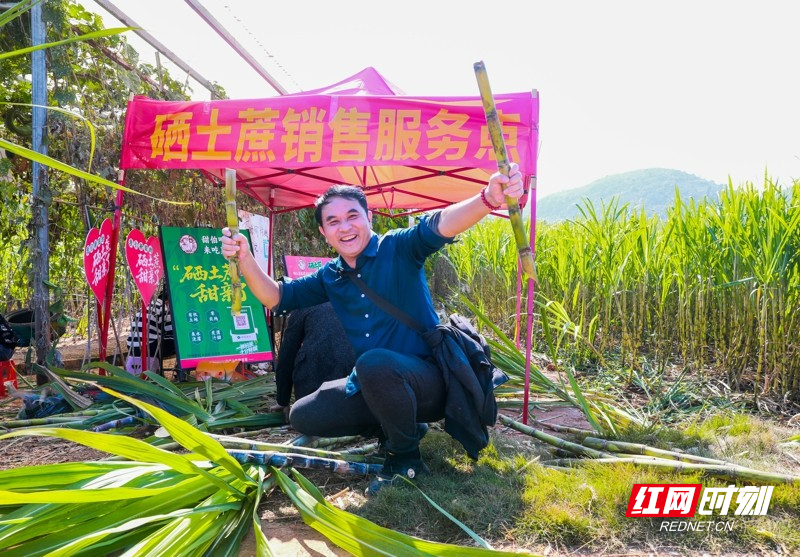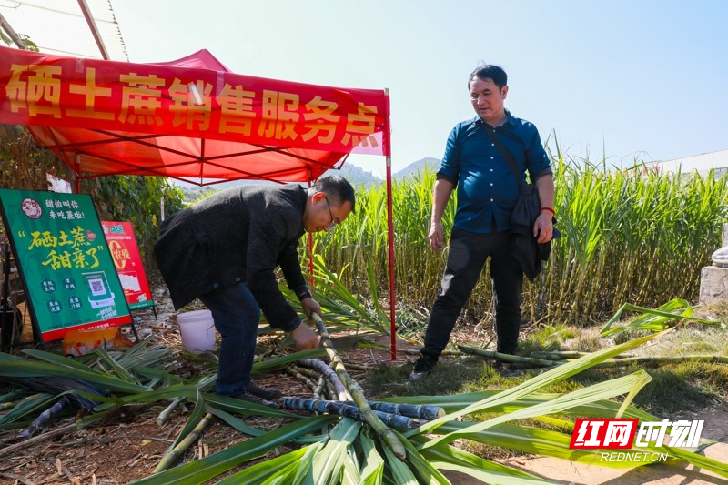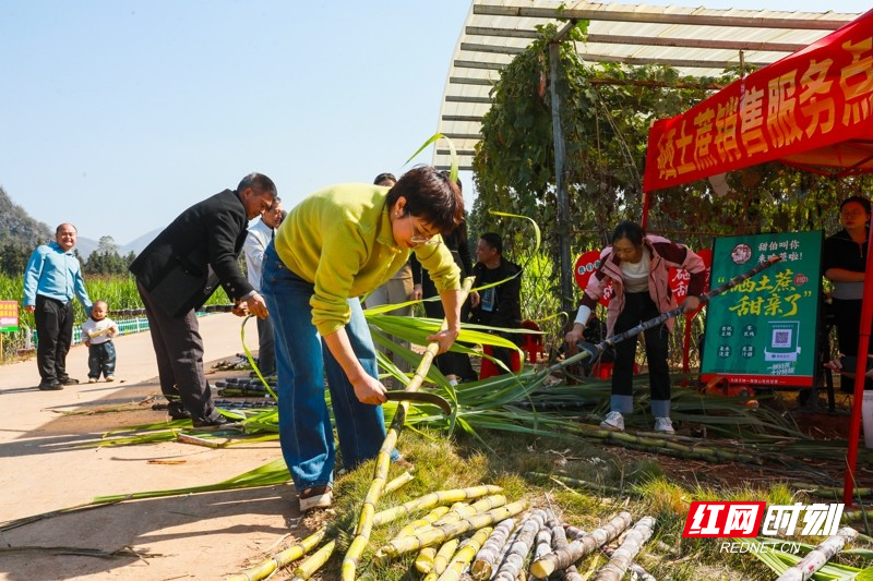 红网时刻新闻11月19日讯(通讯员 刘贵雄)11月16日,湖南省永州市新田县石羊镇三水村五月豆香富硒甘蔗种植基地,游客在品尝采购甘蔗。时下,该基地种植富硒甘蔗喜获丰收,因甘蔗特别脆、甜而吸引了大批游客前来品尝采购。近年来,新田县湖南五月豆香有限公司依托当地土地富硒资源优势,建设国家地理标志产品新田大豆和甘蔗等富硒农产品种植基地,打造“五月豆香”富硒农产品品牌,建成集农产品生产加工、体验、销售、休闲观光为一体的农村一二三产业融合田园观光综合体,带动周边农民增收,助力乡村振兴。