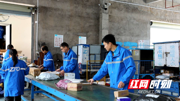 走进江永县智慧物流城,这里汇集了顺丰、中通、申通等多家物流企业,在中通快递分拣中心,工作人员正在进行快递的分拣、装卸、扫码等工作,一条条分拣线高速运转,包裹在上线通过智能扫描后被工作人员分入代表不同目的地的格口,待包裹装车完毕后,工作人员便立即开往对应的配送区域为市民派送。