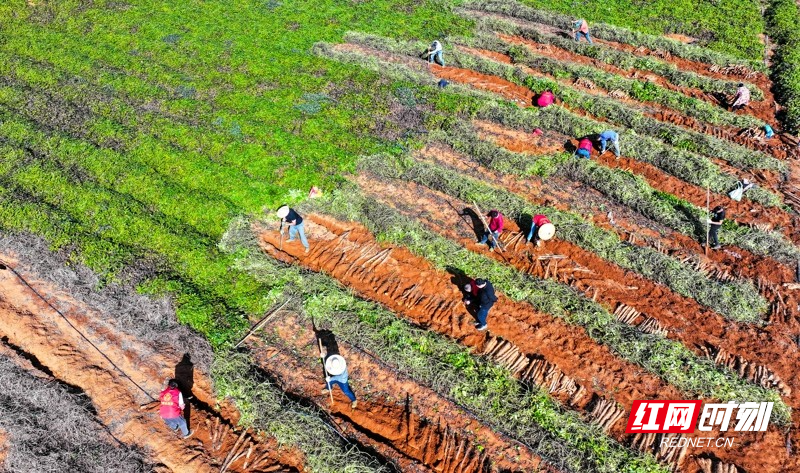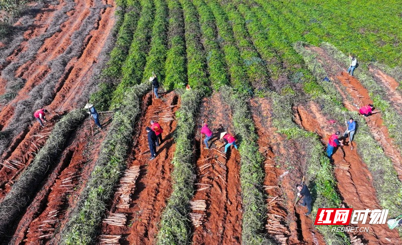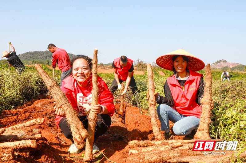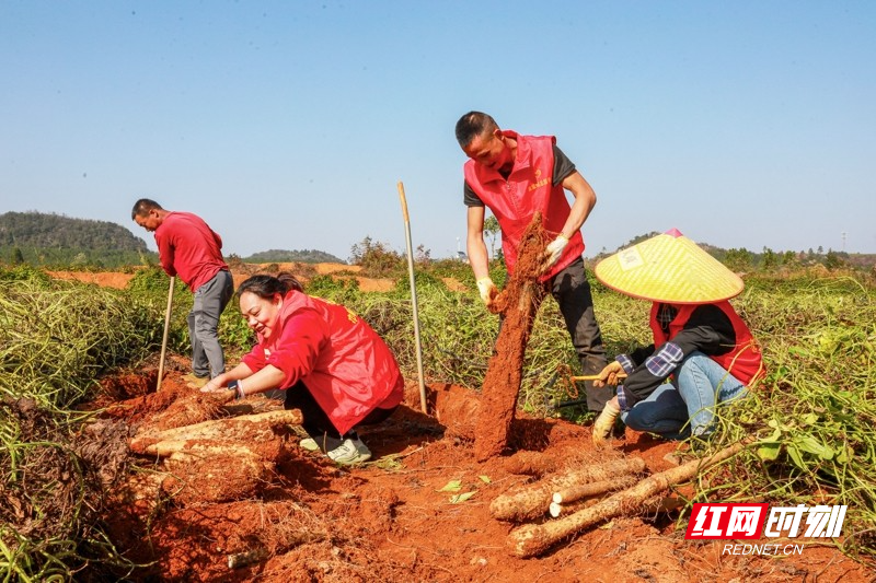红网时刻新闻11月26日讯(通讯员 刘贵雄 唐宁)11月25日,湖南省永州市新田县金盆镇青山坪村,党员志愿者在帮村民采收淮山。近日,湖南省新田县金盆镇青山坪村种植的淮山喜获丰收,驻村乡村振兴工作队和村支两委组织党员干部深入田间地头,助农采收淮山供应市场。近年来,湖南省新田县坚持党建引领,利用土地富硒资源优势,优化农业产业结构。青山坪村采用“党支部+公司+基地+农户”模式,精准招引外地企业联合发展淮山、紫薯种植产业,实现“土地有租金、务工有薪金、产业有收益”,带动村级集体经济稳步增收,走出了一条党建赋能产业、产业助推乡村振兴的可持续发展之路。