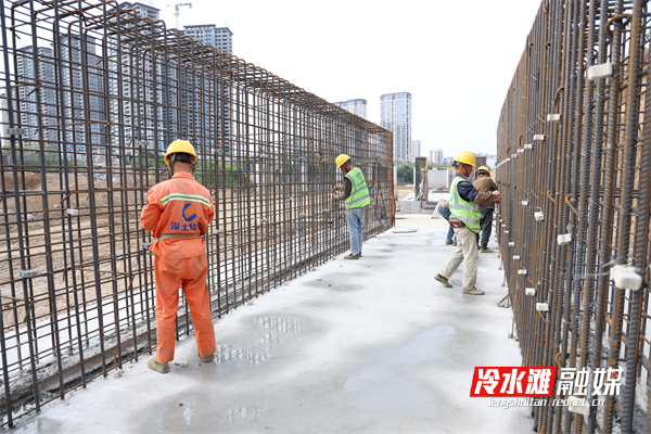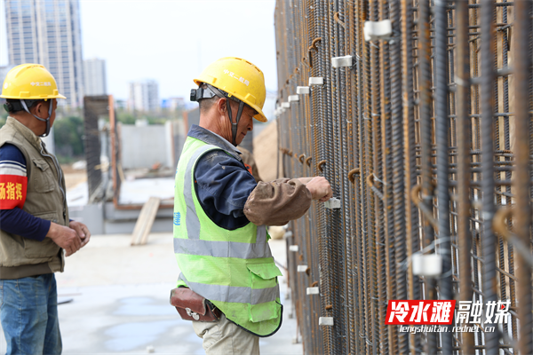 钢筋林立间,工人们正有条不紊地进行钢筋绑扎、固定作业。王庚娣 摄