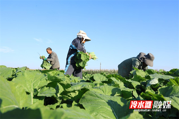 成片的油菜薹满眼翠绿,村民们忙着采收。曹慧璎 摄
