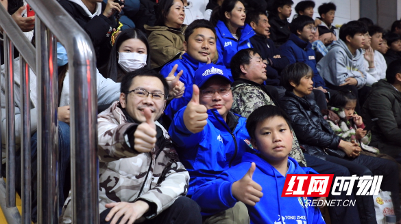 为提升观赛体验,江永县特意开放一中体育馆作为主观赛点,安排《旗鼓震山河》特色文艺表演暖场造势,并配备专业MC全程引导互动;爱心企业还贴心送上江永香柚、五香食品、橘子等本土特产,供球迷免费品尝。比赛开始前一小时,大批球迷便已陆续进场,他们高喊口号,用满满的热情为永州队助威。