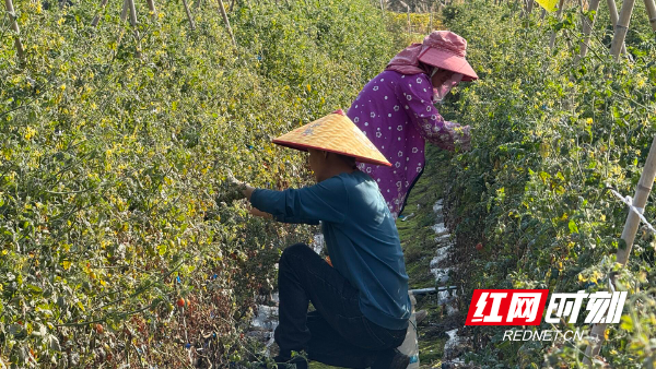 在千家峒瑶族乡圣女果种植基地,连片的果藤长势喜人,红彤彤、黄灿灿的圣女果缀满枝头,果香四溢。54岁的种植户赵开平正和妻子忙着采摘成熟果实,指尖翻飞间,饱满的圣女果很快装满了果篮。