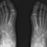 通常情况下,患有拇外翻的个体能够直接观察到踇趾的外翻畸形,从而实现初步诊断。然而,标准的X线检查对于评估拇外翻畸形程度具有更为显著的优势。